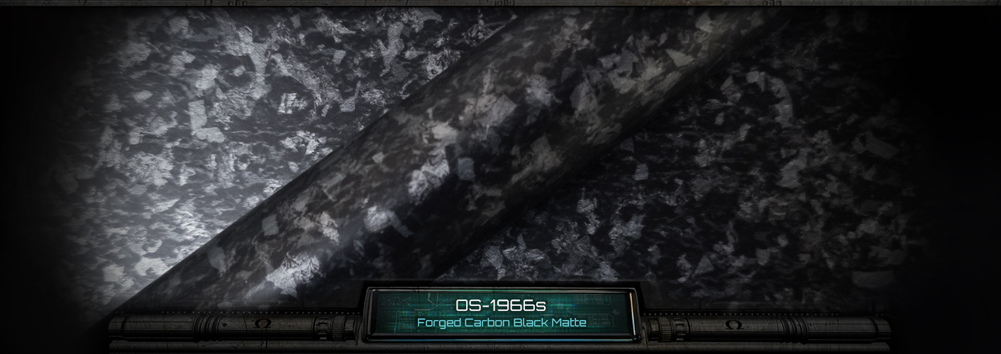 OS-1966S Forged Carbon Black Matte delivers the rugged, fragmented look of forged carbon, but with a deep, non-reflective matte finish that enhances every contour without the glare. The unique, chaotic carbon pattern appears sculpted into the surface, giving the material an industrial yet sophisticated character.