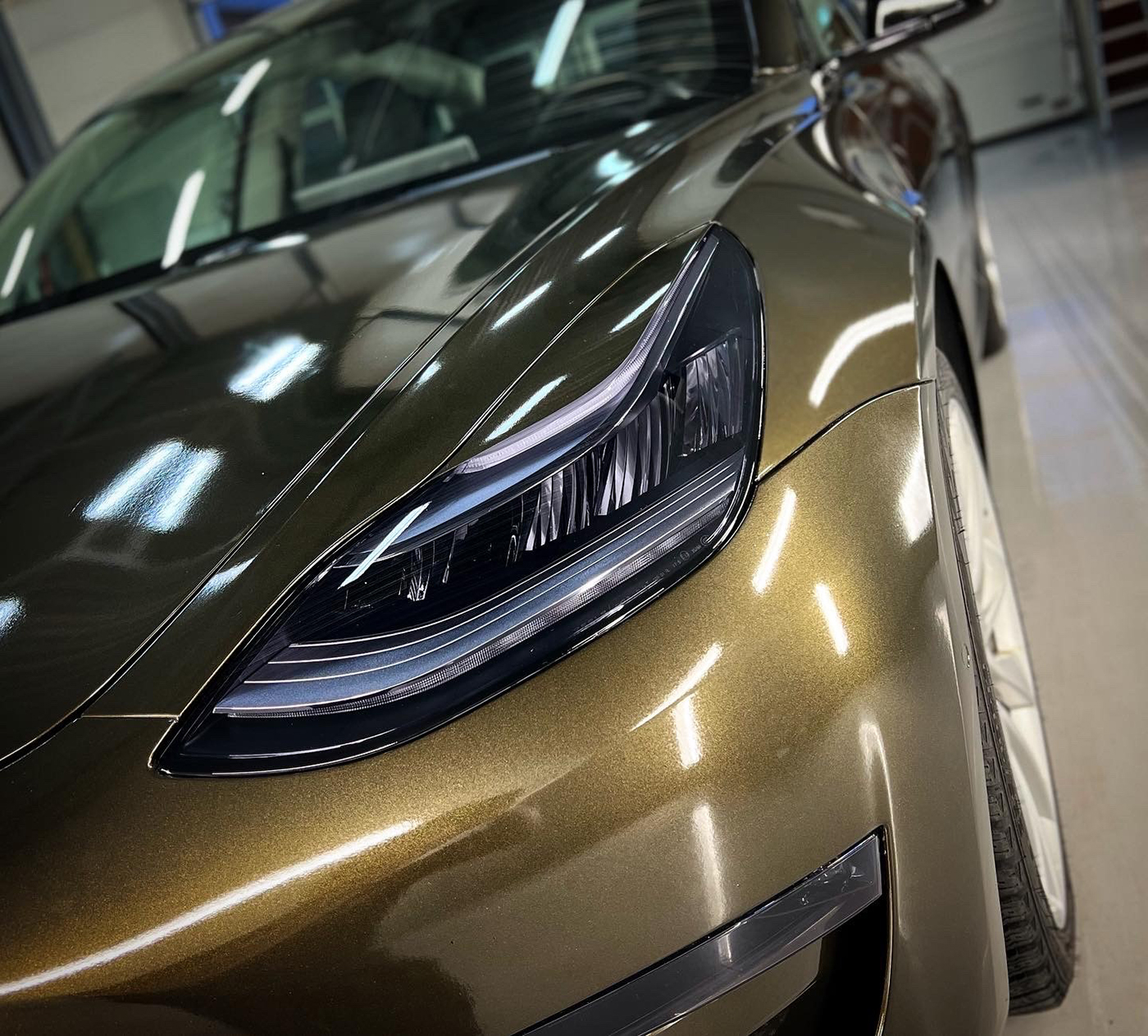 OS-736 Fusion Tech is a striking high-gloss metallic wrap that fuses deep olive green with subtle tones of bronze and gold. The result is a color that feels both high-tech and luxurious, shifting character as light moves across the surface.