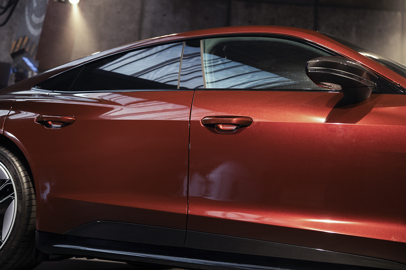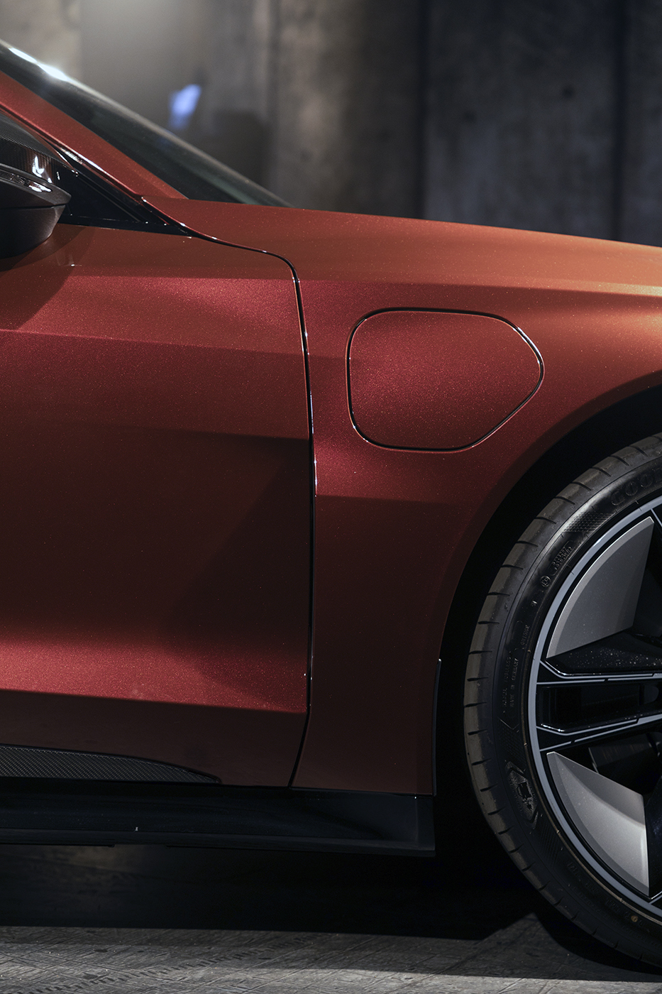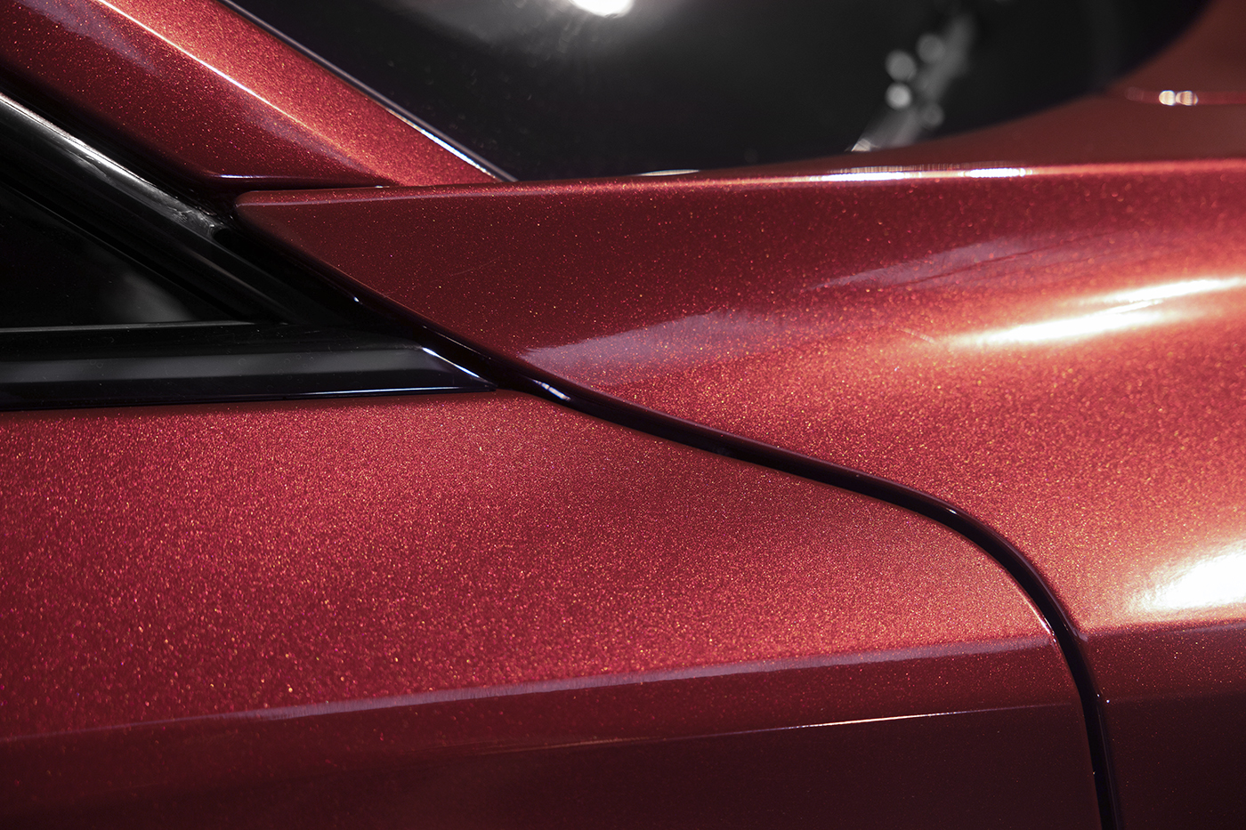 A smooth transparent top layer enhances the richness of the color, creating a dynamic sense of depth. Depending on the angle and lighting, curves, corners, and indents transition fluidly from dark crimson to a glowing red metallic and back again, a visual effect that evokes pure sophistication.